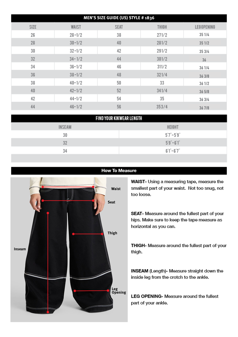 Sits below the waist with a longer rise. Baggy fit through the hip & thigh.