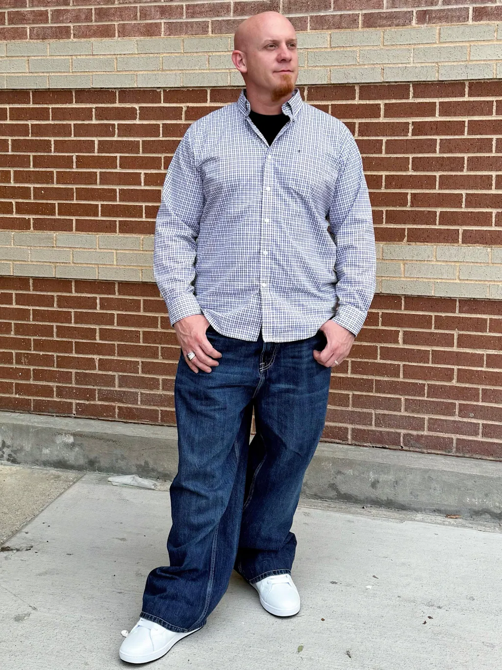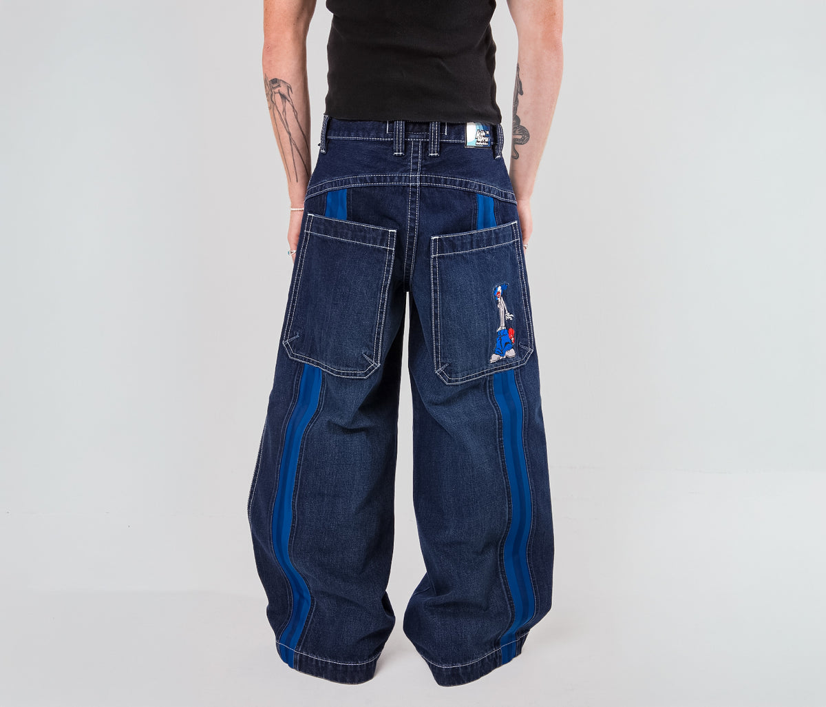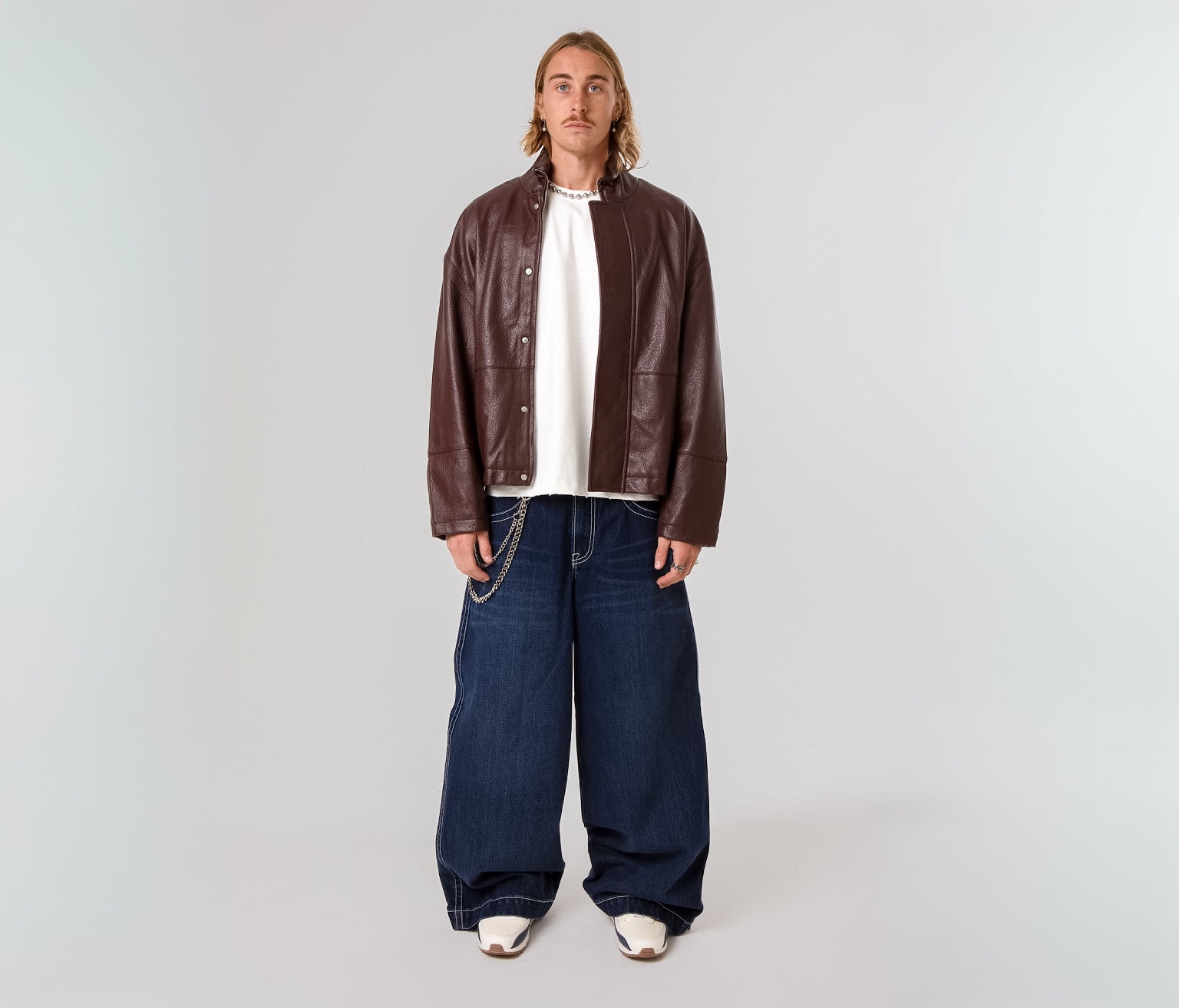 Sits below the waist with a longer rise. Baggy fit through the hip & thigh.