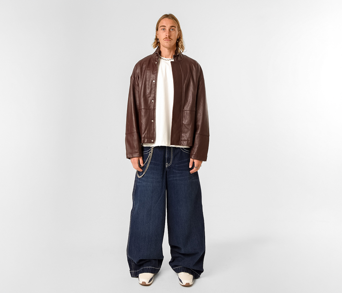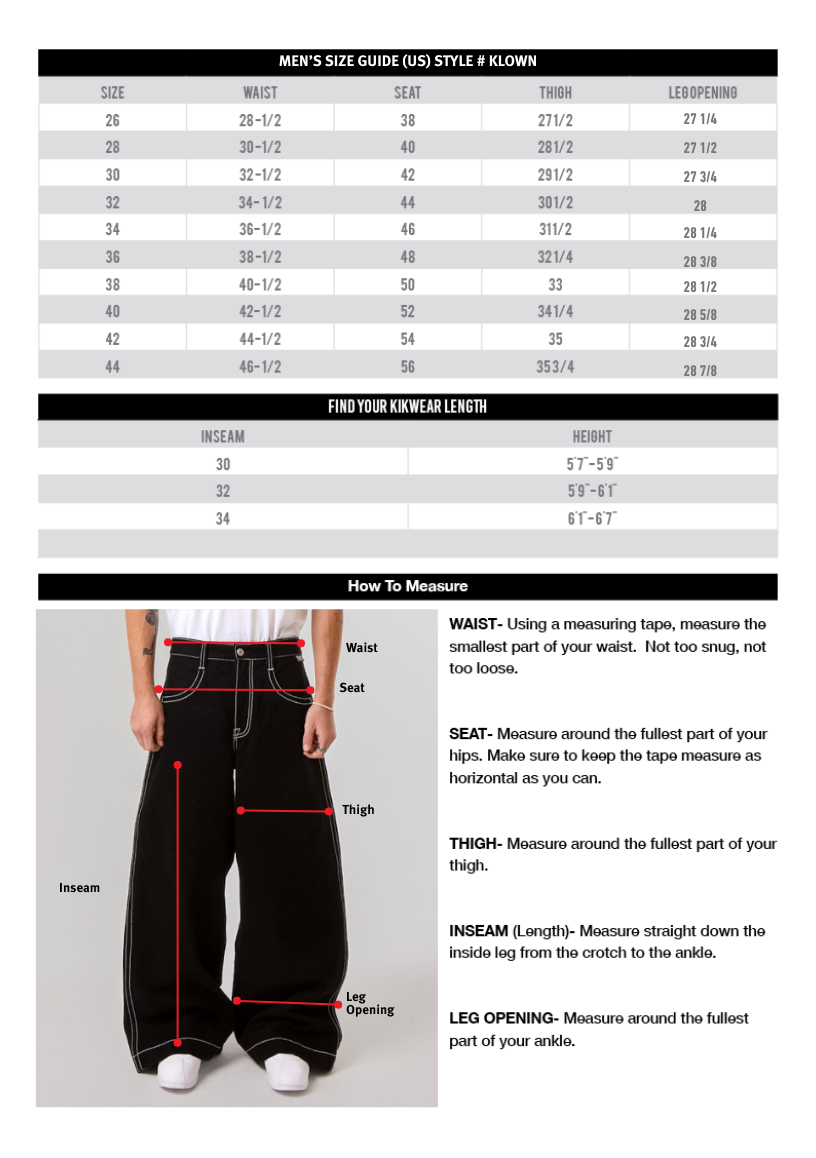 Sits below the waist with a longer rise. Baggy fit through the hip & thigh.